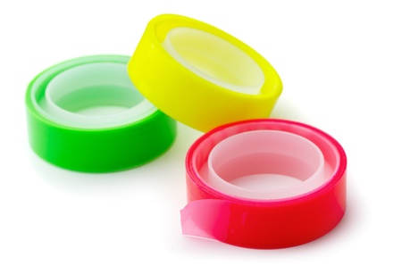 Scotch tape adhesive group colorful blue pink orange,isolated white background