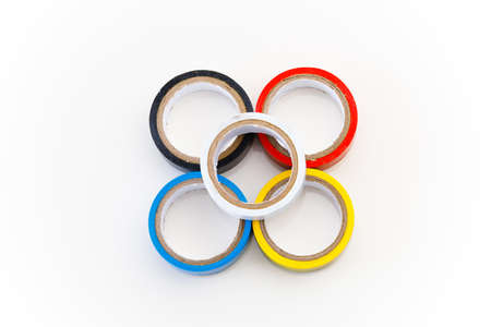 Insulating Tape isolated on white background. Set of different colors insulating tape.