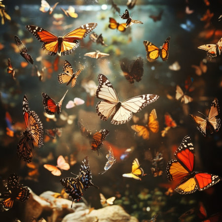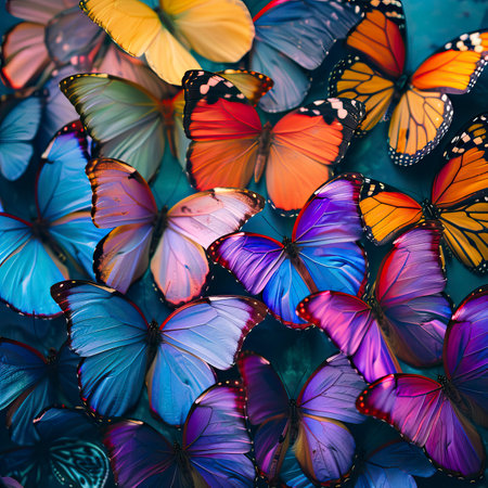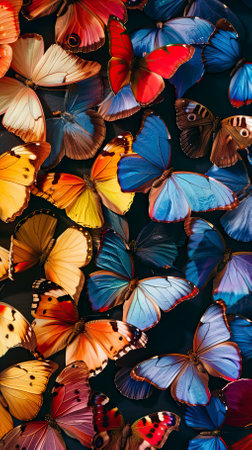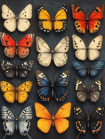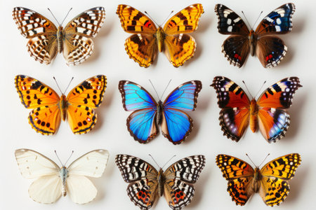A stunning display of various colorful butterflies in a serene environment, showcasing their delicate wings and vibrant hues. This image captures the essence of nature's beauty with a focus on butterfly diversity and habitat. Ideal for nature lovers and educational purposes.