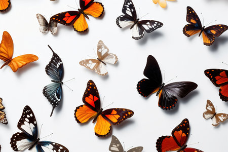 Butterflies on white background. Flat lay, top view.
