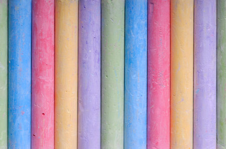 A collection of colorful pastel sticks arranged on a wooden surface. The sticks are arranged in rows and create a vibrant display of hues and tones. This image evokes a sense of creativity and artistic expression.