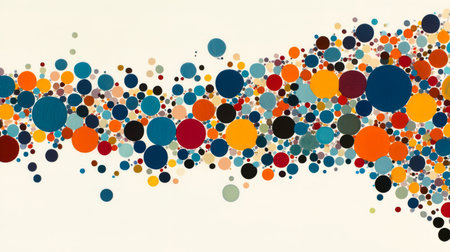 Colorful abstract background featuring overlapping circles in various sizes and hues. Ideal for vibrant banners, modern web designs, and creative projects. -
