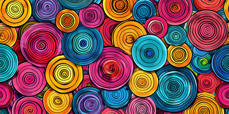 Circular patterns in bold colors showcase creativity and artistic expression in design.