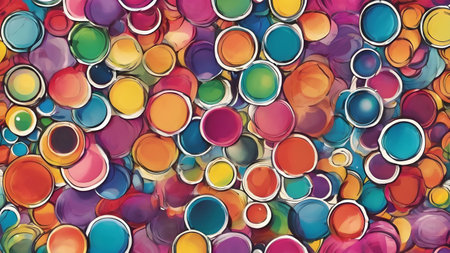 This vibrant abstract background showcases a harmonious arrangement of circular shapes in varied colors, perfect for enhancing creative projects and designs.