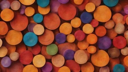 This vibrant image showcases an array of overlapping circular shapes in rich textures and colors, perfect for various creative projects and design applications.