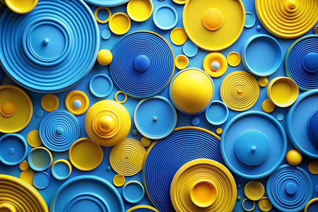 Blue and yellow circles texture background; abstract design element