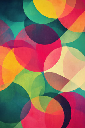 Modern Abstract Artwork Featuring Vibrant Colored Circles on a Textured Backdrop, Geometric Design