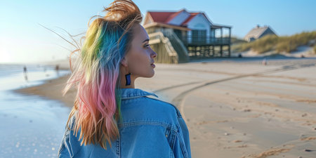 Portrait of a beautiful young woman with dyed hair on the beach
