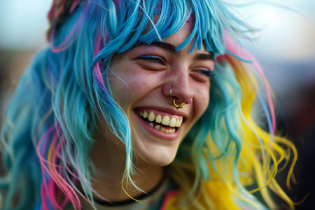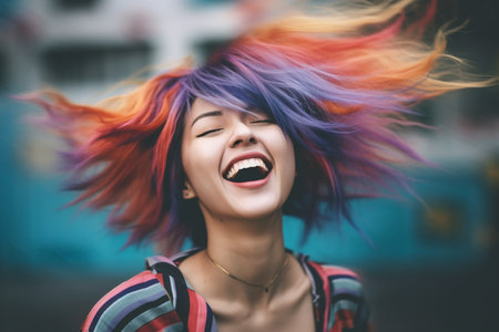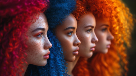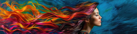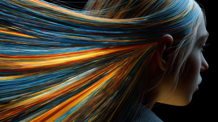 This captivating image showcases dynamic hair strands in brilliant colors, creating a striking portrait that embodies artistic expression and creativity.