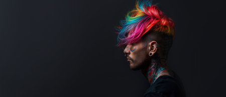Informal punk man with dyed colored hair. horizontal banner