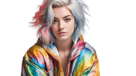 Portrait of a beautiful young woman with multi-colored hair.