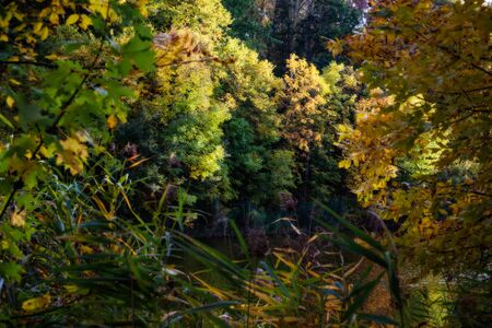 Autumn landscape with colorful trees in the forest. Selective focus.