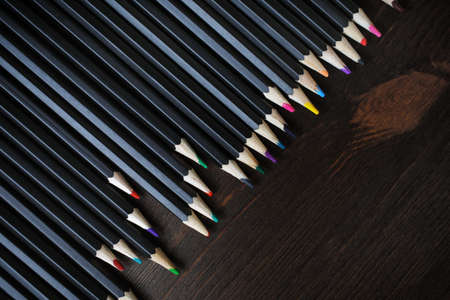 group of drawing color pencils on wooden background