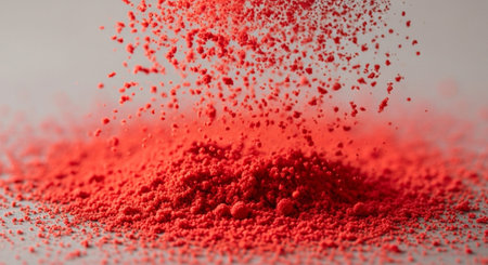 Bright red Holi powder explosion bursts vibrantly against a clean white background, symbolizing Indias iconic festival of colors. This image captures dynamic cultural energy, festive joy, and