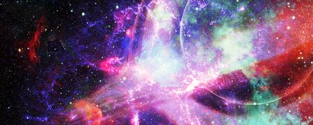 Abstract fractal illustration. Multicolored clouds of the starry sky. Banner. Used for design and creativity, for screensavers.