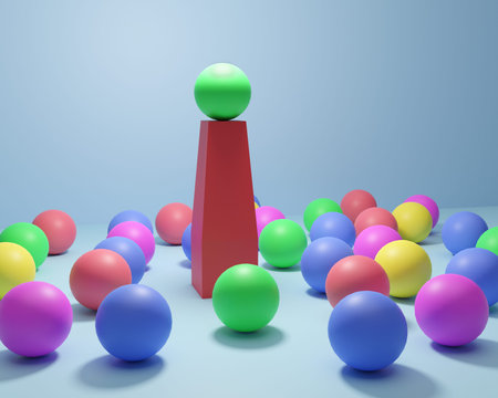 Leadership. Conceptual image of a leader and subordinates. Business teamwork. Colorful balloons.