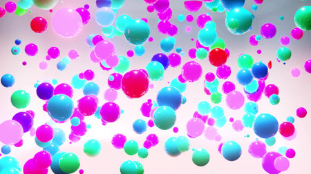 3d bubbles. Spheres background. Abstract wallpaper. Flying geometric shapes. Trendy modern illustration. 3d rendering. Falling abstract balls. Colorful poster backdrop. Minimal style.