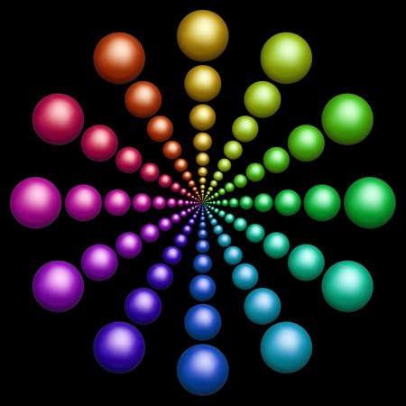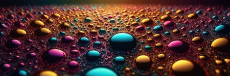 Abstract digitally generated cluster of multicolored bubbles floating on dark grey background