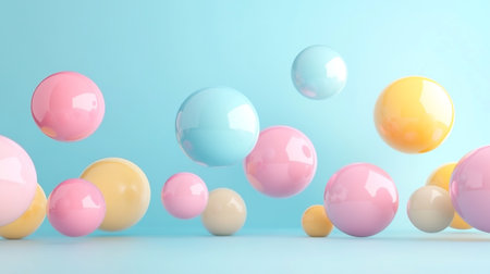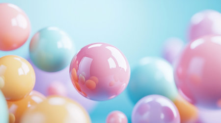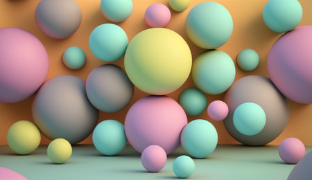 A captivating abstract image featuring numerous pastel-colored spheres in a 3D rendering. Soft, rounded forms create a visually pleasing and calming effect.