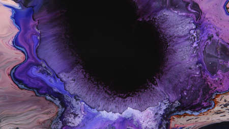Abstract fluid art background light blue and purple colors. Liquid marble. Acrylic painting on canvas with turquoise gradient. Watercolor backdrop with striped violet pattern. Stone section.