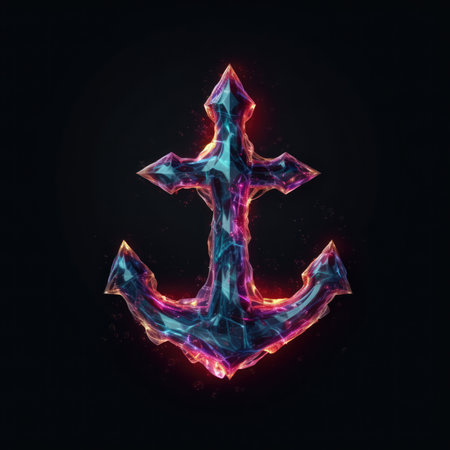 Chrome anchor reflecting vivid colors on a gradient background, creating a striking visual contrast