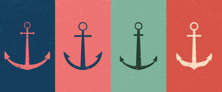 Anchor symbol on aged surface. Peeled sign, red blank board background, close up view.