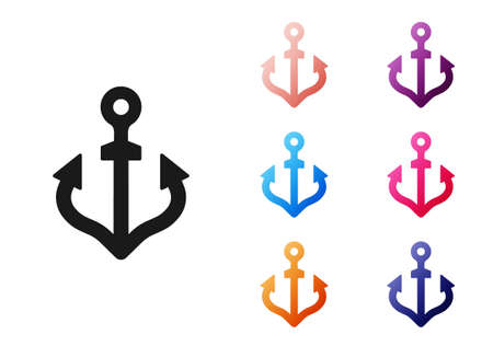 Black Anchor icon isolated on white background. Set icons colorful. Vector