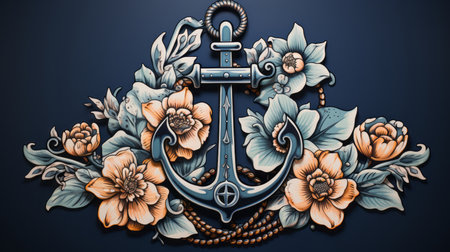 Vintage Nautical Anchor and Weathered Fishing Net Against Blue Background AI Generative