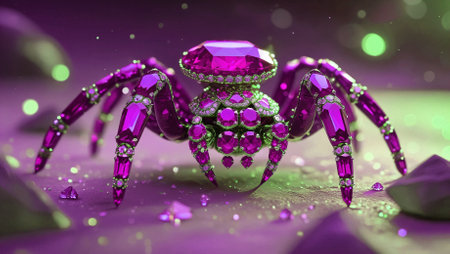 A strikingly detailed spider made of sapphire-like jewels against a soft bokeh background. Perfect for luxury, creativity, or surreal art themes