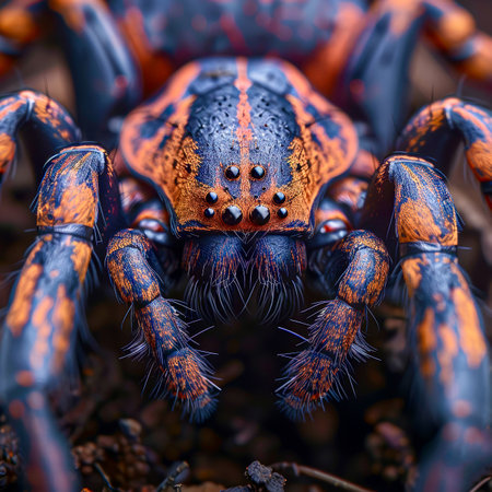Close-Up Portrait of a Striking Blue and Orange Tarantula
