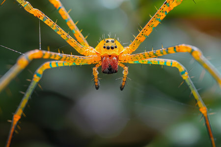 Extreme Close-up of a Colorful Striped Spider Captivating with Intricate Patterns and Delicate Web