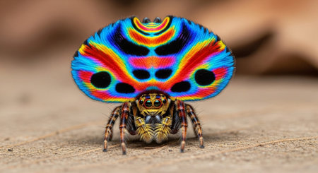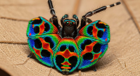 peacock spider flaunting its vibrant patterns, created with generative ai