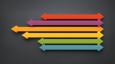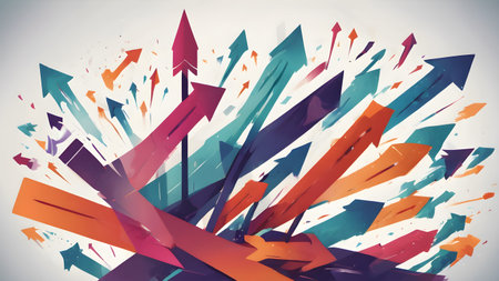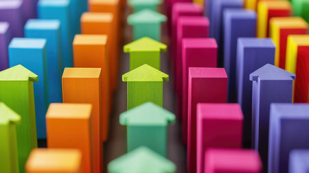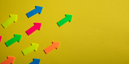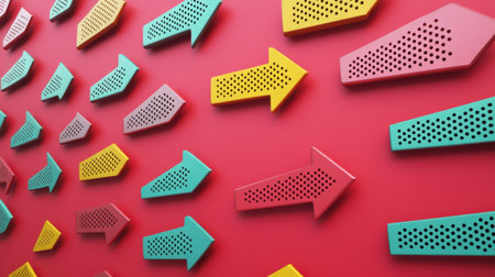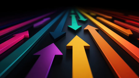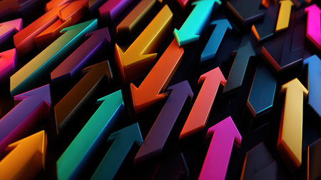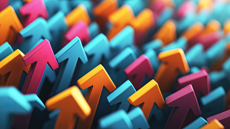 Vibrant arrows in various colors represent growth, direction, and progress. Ideal for concepts of success and motivation.