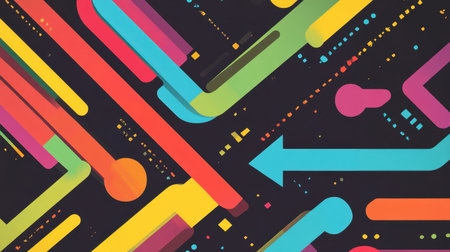 This vibrant image features colorful arrows and lines arranged thoughtfully on a neutral background, symbolizing movement and creativity. Ideal for modern design projects.