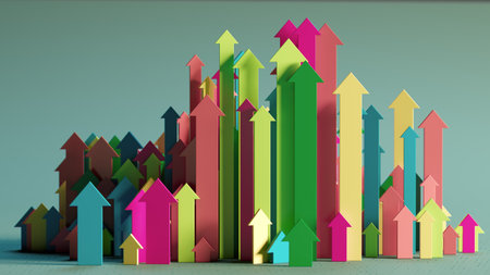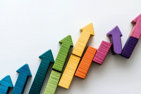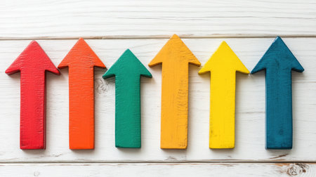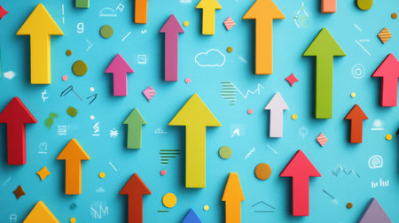 Vibrant arrows in various colors point upward on a bright background, representing growth and positive trends in business and personal development. Ideal for creative projects.