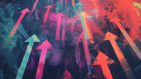A vibrant and dynamic image featuring colorful arrows rising, symbolizing growth and progress. The abstract background adds texture and energy to the composition.