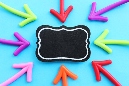 Colorful arrows and blackboard on blue background