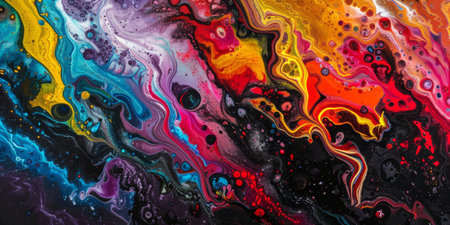 A colorful mixture of paint in a liquid form, creating an abstract composition. AI-generated.