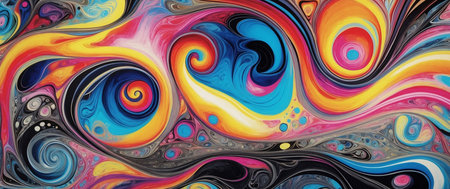 Abstract multi colored paint swirls with pattern, no people