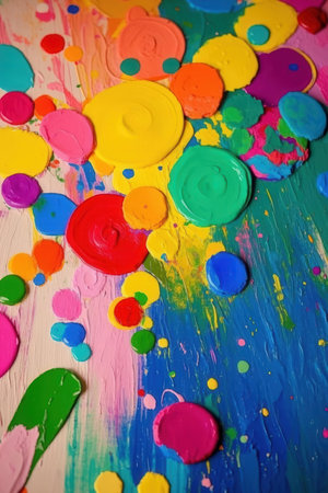 A vibrant, multicolored paint splatter background, ideal for creative and artistic projects