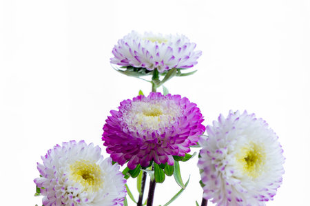Colorful pink and blue aster flower isolated on white background. Place for text. Copy space