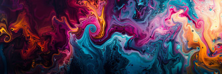 Abstract fluid art with vivid swirls of pink, blue, yellow, and orange, creating a dynamic, vibrant composition.