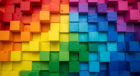 Multi-colored wooden cubes in the form of a rainbow. Background