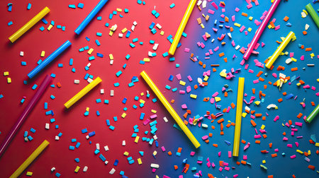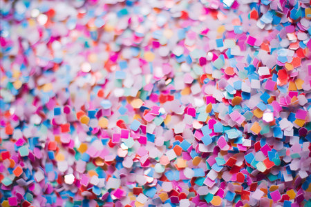 A bright and colorful confetti spread across a surface brings life to any celebration, inviting joy and happiness. Perfect for vibrant event decorations and festive themes.