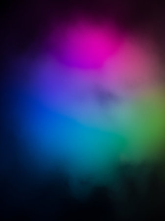Color showing softly blended swirls of vibrant magenta blue green and purple hues creating an abstract gradient background with subtle texture and dark edges...