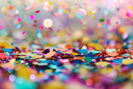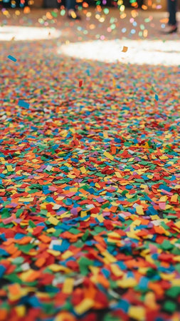Bright confetti floats joyfully in the air adding excitement to a lively celebration filled with cheer.