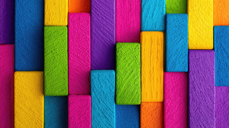 An array of colorful abstract wooden blocks creating a vibrant and textured background