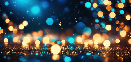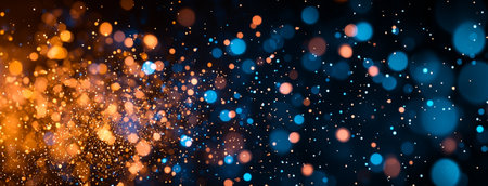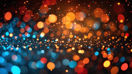 A Vibrant bokeh background with orange, blue, and white lights creating magical atmosphere. Perfect for festive themes or artistic designs