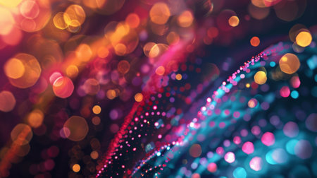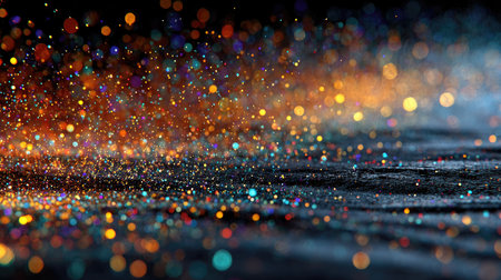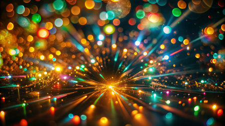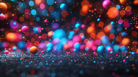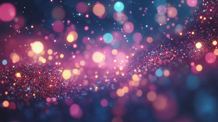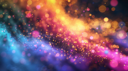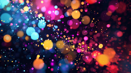 A stunning visual featuring colorful particles creating a vibrant bokeh effect on a dark background. The shimmering lights evoke a sense of magic.
