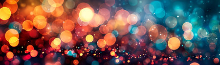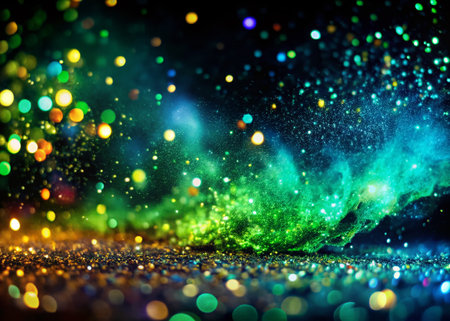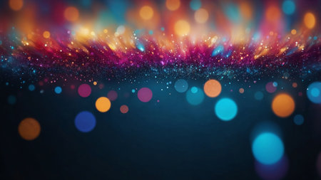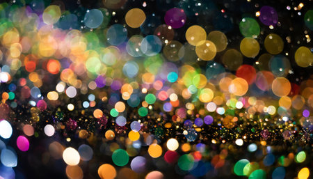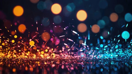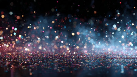 A dazzling background featuring vibrant bokeh effects and colorful glitter particles, ideal for celebratory themes, holiday events, and joyful occasions.
